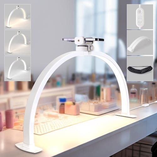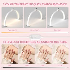 - Uso versátil: esta luz de meia lua para mesa de unhas não é apenas uma escolha ideal para técnicos profissionais de unhas, mas também adequada para cuidados faciais profissionais, extensões de cílios, tatuagem, artesanato, faça você mesmo, vídeos de maquiagem, transmissão ao vivo e iluminação de ensino online. Esta luminária de mesa de unhas atende às suas necessidades específicas, quer você precise de iluminação ambiente confortável ou trabalho de precisão de alta qualidade.
