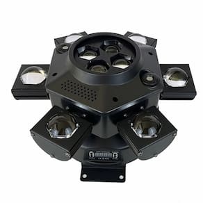Com a capacidade de pan e tilt de 360 graus, proporciona movimentos suaves e precisos que varrem a pista de dança ou o palco, preenchendo o espaço com uma iluminaçao envolvente e imersiva.