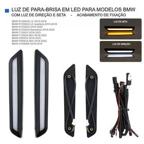 Par de luzes led de parabrisa / guarnição com luz diurna drl e setas - para motos bmw modelos abaixo descritos - produto completo - kemimoto - 12v -- para motos bmw modelos: Características: - luzes led de alto brilho, com aumento de visibilidade. - suporta qualquer clima, de -40 c a 45 c. - saída do cabo selada no suporte. A prova dagua. - fácil de instalar. Plug and play Dimensão: - última foto do anúncio possui todas as medidas do produto. Informações técnicas - marca: kemimoto - modelo: bmw-led para-brisa - tensão: 12v - potência: seta - cor laranja - 1w - potência: drl - luz diurna - 0.24w - posição: para-brisa - impermeável: certificado ip67 - materiais: policarbonato + abs + led - cor: preto Itens inclusos - 1 par de luzes para para-brisa + cabos completo plug and play Aconselhamos que a instalação seja feita por um ou pessoa capacitada. Marca: Não Informado Ean: 7909023946599