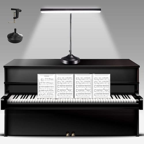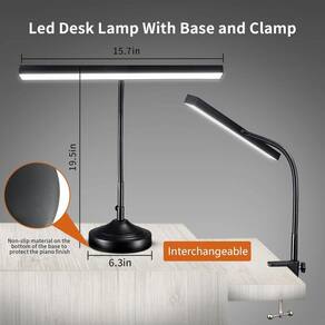 - 4. ?Braço flexível e base estável: o braço de metal flexível de 360° é projetado para permitir que você ajuste facilmente a direção da luz, e sua placa de luz longa especial ilumina a partitura e todas as teclas do piano diretamente acima. Além disso, nossas luzes de piano têm uma base resistente com um design de centro de gravidade baixo que estabiliza o piano não importa onde o braço gire, e uma base antiderrapante que não arranha a superfície do piano.