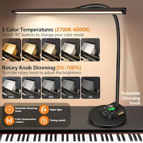 Incorporando contas de LED 2835 de alta qualidade oferecem distribuição uniforme de luz em todo o teclado. Nossa luminária de mesa reduz significativamente a emissão de luz azul prejudicial, garantindo conforto para longas horas tocando ou trabalhando sem fadiga - perfeita para pianistas, leitores, estudantes, profissionais em vários campos, incluindo entusiastas de artesanato e costura.