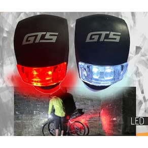 Possui 2 sinalizadores com 2 leds multi-uso luz de segurança em cada, sendo o dianteiro com leds na cor branca e o traseiro com leds na cor vermelha