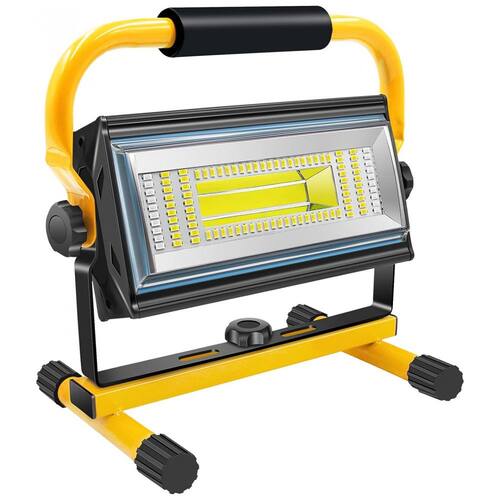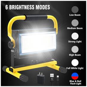 Iluminação de super brilho esta luz de trabalho led recarregável tem 80 peças de led de luz branca de alto lúmen de 1 w, um led de super brilho de 20 w cob e 20 peças de led vermelho e azul, total de 100 w, saída de 7000 lumen. Sua luz de feixe forte pode atingir até 50 metros, 164 pés, com uma largura de feixe de luz de 120 graus, pode cobrir uma área de quadra de tênis. A iluminação super brilhante, você pode iluminar sua área de trabalho como o sol a qualquer momento.