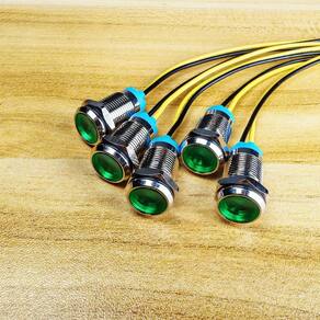 Gebildet 5 peças 10 mm luz indicadora de metal LED 110V-220V AC lâmpada de sinal à prova d'água (verde) - ?Tensão nominal? CA 110V-220 Volt; Corrente nominal: 20mA, Consumo de energia nominal: 0,5W. Diâmetro do orifício de montagem: 10 mm; Comprimento do cabo: 140 mm. - ?Luz indicadora?Estas luzes piloto de montagem em painel certamente darão a você uma sugestão de status visual de qualquer sinal de indexação, sinais de antecipação, sinal de emergência e outros sinais de indexação. - ?Faixa de aplicação?Amplamente utilizado em energia elétrica, telecomunicações, máquinas-ferramenta, motor, eletrodomésticos. - ?Características do produto?Classificação à prova d'água: IP65; Vida útil: 10.000 horas; Material do corpo: latão cromado. - ?Fácil de usar?Economia de energia e baixo custo de manutenção. Montagem embutida para fácil conexão e forte condutividade. Basta fazer um furo e instalar com porca e arruela.