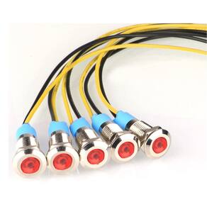 Especificações: Material da carcaça: níquel revestido de latão de aço inoxidável Cor da luz: vermelho Tensão: 110V-220V AC (amarelo é positivo e preto é negativo) Comprimento da lâmpada: 2,1 cm/0,82" Comprimento do fio: 15 cm. Incluído na embalagem: 5 luzes indicadoras LED vermelhas. Características: 1. Luz brilhante superbrilhante, desempenha um papel importante no aviso e na indicação. 2. Ecológico e econômico, excelentes chips de LED. 3. Durável no uso, a melhor substituição de lâmpadas de indicação antigas e quebradas. - ?Características do produto?Classificação à prova d'água: IP65; Vida útil: 10.000 horas; Material do corpo: latão cromado. - ?Faixa de aplicação?Amplamente utilizado em energia elétrica, telecomunicações, máquinas-ferramenta, motor, eletrodomésticos. - ?Fácil de usar?Economia de energia e baixo custo de manutenção. Montagem embutida para fácil conexão e forte condutividade. Basta fazer um furo e instalar com porca e arruela. Usar. - ?Luz indicadora?Estas luzes piloto de montagem em painel certamente darão a você uma sugestão de status visual de qualquer sinal de indexação, sinais de antecipação, sinal de emergência e outros sinais de indexação. - ?Tensão nominal? CA 110V-220 volt; corrente nominal: 20mA, consumo de energia nominal: 0,06W. Diâmetro do orifício de montagem: 8 mm; Comprimento do cabo: 140 mm.