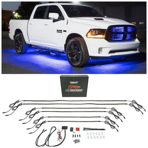 Adicione iluminação azul com brilho sublinhado ultra brilhante ao seu caminhão com tubos resistentes à água de 2 de 1,15 m 2 de 0,9 m e 2 de que abrigam 160 LEDs SMD Apresenta apenas iluminação de cor sólida. O kit está ligado e desligado com o interruptor de alimentação incluído Tubos na parte inferior da carroceria apresentam 1,8 m de fio em cada extremidade. Conexões Plug Play. Inclui instruções de instalação e instalação de hardware Marca: Não Informado
