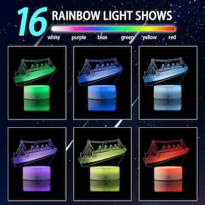 - 🚢?Efeito visual 3D?A luz noturna de ilusão 3D inovadora tem um belo efeito de holograma e é muito melhor no escuro. Ótimas cores e aparência incrível, pode ser colocada no quarto, sala de criança, sala de estar ou festa de aniversário como luz decorativa.
