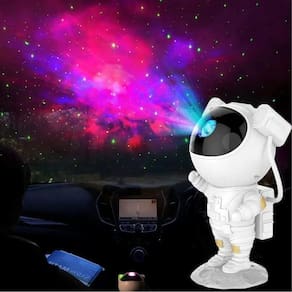 Luminária Projetor De Luz Astronauta - EFEITO GALAXYA NEBULOSACom um efeito SUPER REALISTA, a luminária possui um projetor de alta definição capaz de transformar o seu ambiente em uma galáxia nebulosa. Possui diversos efeitos de luz rotativos combinados com um laser para representar as estrelas do universo. Com um design inovador e aparência única serve perfeitamente como um item de decoração. A cabeça do astronauta pode girar 360, podendo assim posicionar o efeito em qualquer teto ou parede. Pode ser controlado pelos botões na parte traseira ou via controle remoto.
