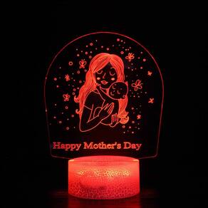 Luz noturna LED 3D Feliz Dia das Mães, mudança de cor