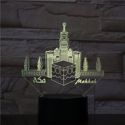 Luz noturna LED 3D: grandes mesquitas de Meca, mudança de cor