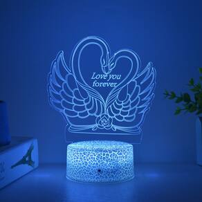 Luz noturna LED 3D Loves Yous Frevers Swans que muda de cor