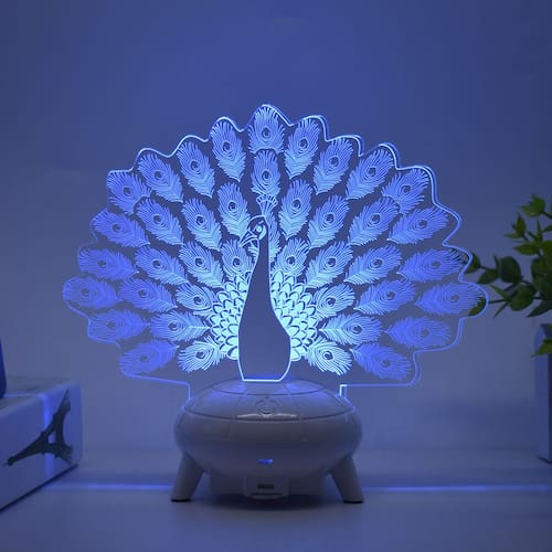 Luz noturna LED 3D Peacocks que muda de cor para crianças