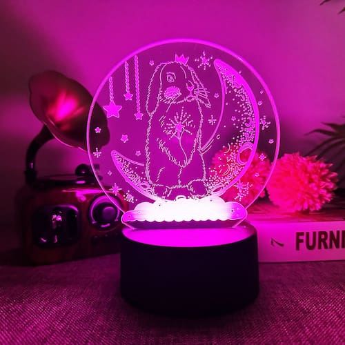 Luz noturna: LED 3D que muda de cor, coelhos, animais para crianças