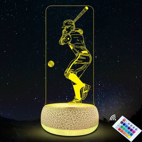 Luz noturna LED 3D que muda de cor de beisebol para crianças