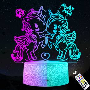 Luz noturna, LED 3D, unicórnios que mudam de cor para crianças de 22 cm