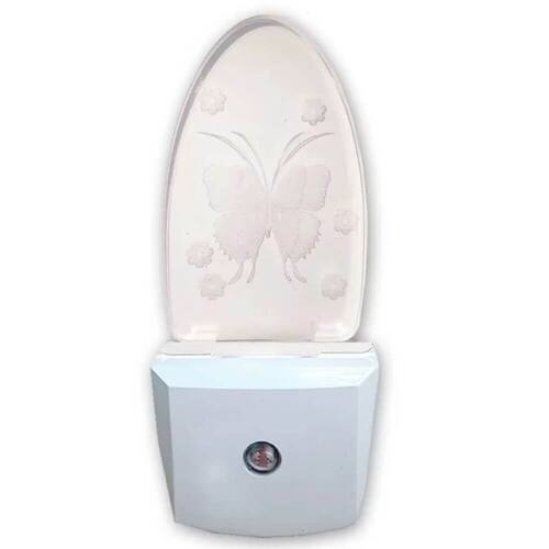 A luz noturna é uma luminária dedicada para quartos, corredores e banheiros. Ideal para crianças e adultos que não gostam de dormir no escuro total. Ótima durabilidade e baixíssimo consumo de energia 0,07 Watts Design especial de fino acabamento, desenvolvido no formato de borboleta para decorar o ambiente. Possui iluminação suave com LED branco que funciona perfeitamente para orientação em corredores. Acende ao escurecer e desliga-se ao clarear, graças a fotocélula integrada na luminária. Acende alternadamente as duas imagens criando a ilusão de movimento.