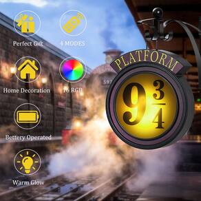 Característica: - Feito de plástico de alta qualidade + metal, pesa cerca de 450 g, tamanho cerca de 22 x 26 cm - Lâmpada de plástico removível com um acabamento de boa qualidade - Suporte de montagem na parede de metal sólido (parafusos e plugues incluídos) - Suporte com vários pontos de suspensão que permite que a lâmpada seja colocada na direção desejada - Interruptor liga/desliga na parte traseira - Requer o uso de 2 pilhas AAA (bateria não incluída). Especifica. ação: Material: metal + plástico Peso: 450 g Tamanho: cerca de 22 * 26 cm/8,6 * 10,2 polegadas Baterias necessárias: 2 x AAA (bateria não incluída) O pacote inclui: 1 x plataforma 9 3/4 luz noturna 1 x controle remoto NOTA: Considere pequenos desvios de medição devido à medição manual - ?16 cores e design remoto?- Feita para imitar uma placa de parede da plataforma 24,5 cm, esta luz noturna de plataforma de 9 3/4 vem em 16 cores diferentes e é controlada remotamente por controle remoto com 4 modos de flash e memória de efeito de luz, o brilho da luz pode ser ajustado. - ?Luz noturna 9 3/4? - A plataforma mágica que permite que você embarque no expresso, esta lâmpada oferece um brilho quente perfeito para adicionar um toque suave ao seu quarto e fica pendurada em um suporte de parede preto moldado incluído, você pode prendê-lo ou perfurá-lo no lugar onde você precisar! Luminária de parede suspensa com parafusos, muito fácil de instalar. - ?Design exclusivo bacana?- Esta deslumbrante luz 3D pode ser pendurada na sua parede ou exibida de forma independente. Design muito fofo, o corpo iluminado e as bordas brilhantes criam um efeito verdadeiramente mágico. A luminária de plataforma é um acessório essencial para fãs e colecionadores. - ?Material premium? - A luz noturna vintage para pendurar 9 3/4 é feita de metal e plástico de alta qualidade, pesa cerca de 450 g, tamanho cerca de 22 x 26 cm, plataforma de luz noturna de 9 3/4 com controle remoto para ligar/desligar e efeitos de luz. - ?Presente perfeito?- Esta luz noturna suspensa de 9 3/4 seria um presente fantástico para qualquer fã, especialmente aqueles que sentem falta da sensação nostálgica de sua primeira viagem no Express. Também é um ótimo presente para aniversários, Natal, Ano Novo, Halloween, etc.