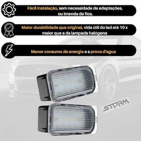 Luz placa nova ford ecosport kit par lâmpada led cor branca Par luz de placa super led led branco para ford Somos a storm parts, vendemos peças importadas e nacionais de alta qualidade com garantia, a nossa equipe especializada está pronta para tirar qualquer duvida, conte sempre conosco. Compatível com:Novo ka sedan: 2015, 2016, 2017, 2018, 2019, 2020Novo ka hatch: 2015, 2016, 2017, 2018, 2019, 2020Nova ecosport: 2013, 2014, 2015, 2016, 2017, 2018, 2019New fiesta: 2013, 2014, 2015, 2016, 2017, 2018, 2019Focus 2008 a 2014 Especificações:Condição: novo com garantia.Origem: importadoLâmpada: placa de led integrada 18 micro leds A prova d'agua.Duração led: estimado em 50 mil horas em utilizaçãoCor da luz: super branca Principais perguntas: P. Necessita adaptação para instalar P. Acusa algum erro no painel do carro P. Anuncio é referente a uma unidade o parR. Anuncio referente ao par lado direito + lado esquerdo P. Qual a condição do produtoR. Vendemos somente produtos novos e lacrados Apesar de fácil instalação recomendamos a instalação por um profissional.