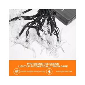 Guirlandas solares de 5 metros lineares de figuras de 30 beija-flores. -Luz quente - com painel solar que não é necessário corrente ou baterias. - À noite, ele liga automaticamente e durante o dia ele desliga para carregar, muito decorativo para seu jardim, pátio, varanda.