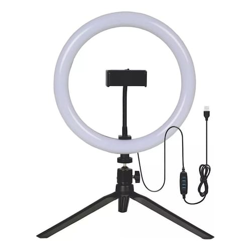 Ring Light com controle de luminosidade para a luz ficar mais forte ou mais fraca níveis de intensidade e três tonalidades de branco branco frio, branco quente e branco neutro para adequar a melhor luminosidade a suas fotos, vídeos, selfies e lives.