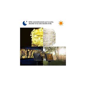 Lâmpada solar LED 22m* 1 Nome: lâmpada solar LED, lâmpada de jardim de corda impermeável, cordão de lâmpada de decoração de Natal, especificações: 22 metros de comprimento total 300LED, 8 funções, passo de 10 cm, 2 fios m, painel solar: 1,2 V 150 mA. Tamanho real do hidreto metálico de níquel: 300 luzes são 800 mAh, embalagem: 14 * 7 * 9 cm Peso: 280 gramas Função do produto: o modo 8 está ligado, modo 1: conversão contínua automática do modo 2-8; modo 2: onda direta e reversa; modo 3: corrida de cavalos com luz dupla; modo 4: desvanecimento da luz única; Modo 5: a estrela pisca com a mudança da corrida de cavalos; Modo 6: as duas luzes se tornam gradualmente mais escuras e mais escuras; 7: estrelas piscam; Modo 8: luz total Veja menos