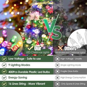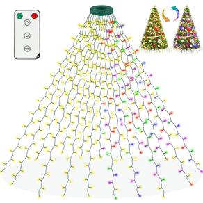 Larkvue Cordão de luzes de Natal para árvore, 400 LEDs 16 x 16 fios, 9 modos à prova d'água, cachoeira, luzes cintilantes com controle remoto e temporizador para decoração - Luzes de Natal brilhantes para decorar árvores de Natal de 1,8 a 2,3 m: 16 cordas x 2 metros de luzes de árvore de Natal com 400 peças brancas quentes + contas de LED multicoloridas, cada cordão vem com 25 LEDs (o espaçamento da lâmpada é de 8 cm/0,26 pés). O fio condutor tem 5 m. As luzes brilhantes emitem um brilho cativante, transformam sua árvore de Natal em uma obra-prima festiva com o brilho quente/colorido dessas luzes de corda de árvore de Natal. Perfeito para criar uma atmosfera alegre de férias aconchegante em seu espaço interno/externo - 2 em 1 branco quente + luzes de árvore de Natal multicoloridas e 9 modos de iluminação: 1 corda é equivalente a ter 2 cordas de luzes. Não apenas um único modo de luz, existem 9 modos de luz diferentes para você escolher: branco quente estável, multicolorido estável, branco quente + multicolorido estável, branco quente brilho lento + brilho lento multicolorido, branco quente + desbotamento multicolorido, respiração branca quente, respiração multicolorida, brilho branco quente, brilho branco quente, brilho branco quente, brilho multicolorido. Simplesmente operado por controle remoto para escolher o seu modo favorito - Fácil de instalar e luzes de árvore de Natal com anel na parte superior: não há necessidade de usar manualmente luzes de fada para gastar muito esforço enrolando ao redor da árvore de Natal, nossas luzes de cascata só precisam desatar as luzes de cordão agrupadas, colocar o anel no topo da árvore e colocar os 16 fios verticalmente. Fios projetados em verde escuro, fáceis de esconder e combinam melhor com sua árvore de Natal. O anel superior também tem uma tomada para eletricidade, para que você possa iluminar sua árvore com um topo de estrela ou outras decorações - Cordão de luz de fada à prova d'água com temporizador e função de memória: nossas luzes remotas são mais convenientes do que a operação manual tradicional de luz de Natal. A função de temporizador permitirá que a luz funcione por 6 horas/desligada por 18 horas. A função de memória lembrará sua última configuração de modo, então você não precisa redefinir o modo todos os dias. Nossas luzes são à prova d'água IP55 e podem suportar chuva, neve, geada e outros climas, tornando-as um cordão de luzes decorativas ideal para uso interno e externo - Luzes de suspensão decorativas para uso interno e externo: Pacote incluindo: 1x 16 fios de luz de 2 metros, 1 x controle remoto e 1 manual do usuário. Nossas luzes plug-in não são usadas apenas para decoração como árvore de Natal, árvore e arbusto ao ar livre, cerca, barraca de acampamento, jardim, gramado, pátio, escada, porta da frente, café, bistrô etc., mas também para festas, casamentos, jantares em família, Ação de Graças, Halloween, Natal, Ano Novo para criar a atmosfera festiva perfeita, adicione o charme e a alegria para todas as suas necessidades de iluminação de férias