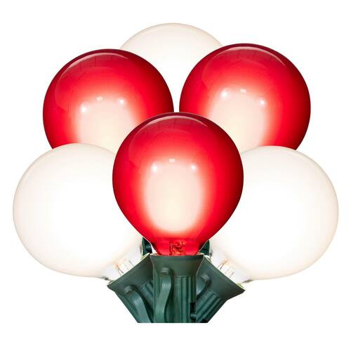 Conjunto de conexão final de filamento Vickerman 15Lt de vidro LED vermelho/branco G50-E12 com fio verde 20AWGXTW e espaçamento de lâmpada de 6"x12"x6". 120V-.6W. Aprovado pela UL.