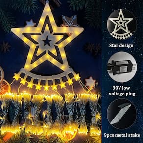 Esta luz de cachoeira de Natal não é apenas adequada para uso interno, mas também para uso externo. As luzes de Natal LED são fáceis de instalar para se adequar a qualquer esquema de decoração, o design exclusivo cria uma atmosfera acolhedora e romântica e pode ser pendurada à vontade, como árvores, janelas, paredes e casas, jardins, Natal, etc., perfeitas para casamentos, festas, decorações de férias. A melhor escolha para decoração de Natal ao ar livre. - [Luzes de Natal magníficas] As luzes de Natal Aokudoni para ambientes externos são cobertas por um pentagrama de 30 cm de diâmetro com 26 LEDs que acendem; abaixo estão 9 feixes com 36 LEDs cada, totalizando 350 LEDs. As luzes LED Star Waterfall têm um comprimento total de 12,6 m de cima para baixo. Você ficará chocado quando acender luzes de Natal de LED tão grandes. E será elogiado pelos vizinhos - [Decorações de Natal para ambientes internos/externos] Estas luzes de LED para árvore de Natal com estrelas são perfeitas para árvores de 2,4 m a 4 m de altura. Comece pendurando a estrela no topo da árvore. Em seguida, cole 9 fileiras de pequenas luzes de estrelas na maior estrela, para que elas fiquem penduradas no chão na forma de uma árvore. Parece colocar um lindo vestido para a árvore - [8 modos de iluminação] As decorações de Natal ao ar livre têm 8 modos de iluminação diferentes: estável, combinação, em ondas, sequencial, slo-glo, perseguição/flash, desbotamento lento e cintilante/flash. Você pode ajustá-lo à vontade de acordo com seus hobbies e cenas, ele sempre se adequará ao seu humor - [Luzes de cachoeira de várias cenas]: Esta grande decoração de Natal LED para ambientes externos pode ser pendurada em beirais, varandas e árvores. Perfeito para decorações de Natal, Ação de Graças, casamentos, Dia dos Namorados e muito mais. Este é o estilo mais clássico, ilumina beirais, árvores, paredes, decks, varandas, árvores de Natal para criar uma atmosfera encantadora. Claro, você também pode usá-lo como uma exibição de iluminação externa de férias, absolutamente atraente - [Presentes de Natal exclusivos e opções de decoração] As luzes de corda de Natal com estrelas podem ser usadas como grandes decorações de árvores ao ar livre, decorações de pátio, iluminação festiva ao ar livre. Surpreenda sua família, amigos, vizinhos com eles como presentes de Natal - [O pacote inclui] 1 luzes LED Star Waterfall; 1 plugue UL; 1 pacote de pontas de aterramento. Bem-vindo aos produtos da Amazon, você receberá o melhor serviço e resposta por e-mail em 24 horas; se você tiver alguma dúvida sobre as luzes de Natal brancas quentes, envie-nos um e-mail gratuitamente