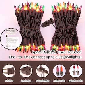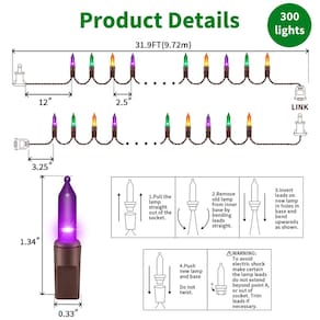 LAMPHOME 2 conjuntos de 2 conjuntos de luzes de halloween de 150 unidades com fio marrom, cordão de luzes para decorações de Natal, luzes de árvore de Natal, festas de fim de ano, casamento, Natal, uso doméstico, interno e externo (300 luzes laranja + roxo + verde) - Pacote com 2 (300 luzes) Luzes incandescentes para decoração de Halloween: Decore com 150 mini luzes incandescentes multicoloridas que dará uma sensação festiva suave ao seu Halloween. Estas lindas lâmpadas de corda têm espaço de 6,3 cm, 2,5 V e 0,42 W por lâmpada, fusível 3A integrado para uso seguro. - Conectável de ponta a ponta: cada conjunto vem com plugue de ponta a ponta, conecte até 3 conjuntos (450 luzes) juntos, expansível até 30 metros mais longos, permitindo que você decore sua área de iluminação com o comprimento desejado. Produtos de alta qualidade com certificação UL garantem a segurança de você e de sua família. - Alta qualidade: a lâmpada resistente é moldada no soquete para formar uma interface segura que trava os componentes, evitando que caiam e prolongando sua vida útil. Plugues empilháveis fornecem instalação conveniente. Basta ligar e desligar para ligar e desligar. A estrutura forte o torna resistente e resistente, não é fácil de danificar. - Decoração perfeita: Perfeito para decorações internas e externas. Halloween, Natal, festa, dia dos namorados, casamento, casa, janela, banheiro, festival, férias, shows, restaurante, hotel, prédio comercial, shopping center, árvores, grinaldas, árvores de embrulho, pátios, pérgulas, arbustos, sebes, cercas, pilares etc. - Para sua satisfação: não se preocupe com a nossa qualidade! Se, infelizmente, você receber um que não funcionar, com nosso serviço de atendimento ao cliente e faremos a substituição ou reembolso de acordo com a situação. Feliz Halloween!