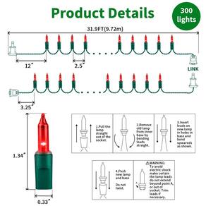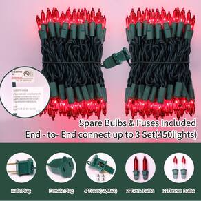 LAMPHOME Pacote com 2 luzes de Natal de 150 unidades com fio verde, cordão de luzes para decorações de férias, casamento, Natal, casa, uso interno e externo (vermelho) - 300 luzes de Natal incandescentes: Luzes verdes de Natal incandescentes antigas, criam uma atmosfera festiva e calorosa, certamente ilumina seu quarto e casa. Uma placa de boas-vindas calorosa à noite para tornar sua casa uma visão maravilhosa para seus vizinhos! - Luzes decorativas de fio verde: decorar com 300 mini luzes verdes incandescentes com fio verde dará uma sensação festiva suave ao seu Natal. Cada lâmpada tem espaço de 6,3 cm, 2,5 V e 0,425 W por lâmpada, fusível de 3 A integrado para uso seguro. Lâmpadas extras e fusíveis estão incluídos. - Luzes conectáveis de ponta a ponta: cada mini conjunto de luzes de Natal vem com plugue de ponta a ponta, pode ser conectável até 3 conjuntos (450 luzes). Produtos de alta qualidade com certificação UL garantem a segurança de você e de sua família. - Ótimo para o Natal: perfeito para decorações internas e externas. Natal, festa de Halloween, Dia dos Namorados, casamento, casa, janela, banheiro, festival, férias, shows, restaurante, hotel, prédio comercial, shopping center, árvores, grinaldas, árvores de embrulho. - Serviço pós-venda: Se houver algum problema de qualidade com estas luzes de corda transparentes, aceitaremos sua solicitação para substituir as luzes de corda dentro de 180 dias após o recebimento.