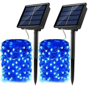 Bem-vindo ao seu ETHO IMPORTDescrição: Pacote de 2 300 luzes LED de 32 metros Solar Fairy Outdoor Blue Características: Painel solar: 2V 100MA. Bateria: 1,2V 600 mAh. Carga total da bateria entre 6 e 8 horas. É um produto ecológico. Pode ser utilizado em casamentos, jardins, praças, festas, eventos. Eles desligam e ligam automaticamente, graças ao sensor de luz. Eles são tão brilhantes quanto os LEDs que se conectam à rede elétrica. Eles são simples e rápidos de instalar. Eles são autossuficientes e não precisam de eletricidade, portanto podem ser instalados em qualquer lugar. Modos: Flicker ou Fixed Power