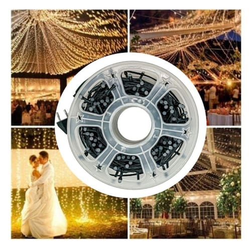 Luzes LED de guirlanda de 50 metros, decoração de casamento em LED quente, multiuso para Natal, decoração, eventos, casamentos e muito mais. TIPO DE LED V8 (LED maior comum) COR BRANCA Guirlanda de luz de Natal CalidoGloser: ao contrário da lâmpada V5 normal, nossa guirlanda de luz é feita de lâmpadas LED V8 (que são maiores e mais brilhantes). Venha em uma roda de armazenamento com luzes LED com plugue seguro, ela pode ser decorada em cantos escuros, sala de estar ou ao redor de uma árvore no quintal. A distância entre as lâmpadas é de aproximadamente 4,92 polegadas/12,5 cm.8 Ritmos de luz: combinação, em ondas, sequencial, brilho lento, perseguição/cintilação, desvanecimento lento, cintilação/cintilação, ignição constante. Ajuste os modos de iluminação pressionando o botão redondo no adaptador. Fácil de usar: conecte e desconecte diretamente para ligá-lo e desligá-lo. Soquete padrão do CHILE., tensão de 220 V. Não há perigo de choque elétrico. Com tensão de saída de 30 V.\ nUsos: Com lâmpadas LED V8 maiores e mais brilhantes, é mais festivo do que as luzes de guirlanda normais. Perfeito para ambientes internos e externos, Natal, festas, Dia dos Namorados, casamento, casa, janela, banheiro, festival, feriado, shows, restaurante, hotel, shopping center, etc. Design de guirlandas. Perfeito para decorar eventos ou casamentos. Quantidade de 240 luzes LED, 50 metros lineares. Caixa sequencial de 8 efeitos, você pode deixar fixos.. Eles não se aquecem.. Economia de energia (luzes LED). Cabo de cor verde. NÃO tem caixa musical.. Tensão 220v. As guirlandas não são à prova d'água. Medidas lineares: 50 metros de comprimento. Quantidade de lâmpadas LED esféricas 240 unidades. Cor da luz: Quente
