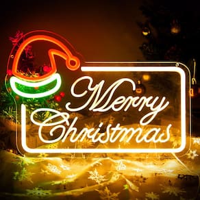 Sinal neon de Feliz Natal: Luzes neon de LED reguláveis para decoração de parede - Decorações de iluminação ambiente ideal para quarto de crianças em casa - Placa de parede neon de Natal: combine a luz neon de Natal com outras decorações de parede para criar um ambiente de férias único e hipnotizante - Decoração e presente ideais de férias: O letreiro de luz neon adiciona um toque festivo a qualquer cômodo, tornando-o o presente ideal para férias apaixonadas pelo Natal. - Sinal neon regulável: Com seu design de iluminação regulável de 10 níveis, você pode ajustar facilmente o brilho de acordo com sua preferência, permitindo que você crie a atmosfera perfeita para as sessões de Natal - Fácil de instalar: Quadro transparente de alta qualidade pré-perfurado com 2 ganchos e 1 corrente para você pendurar a luz neon na parede - Alimentado por USB: alimentado por cabo USB, basta conectar à porta do seu computador ou porta USB para ligar as luzes neon em ambientes internos ou externos