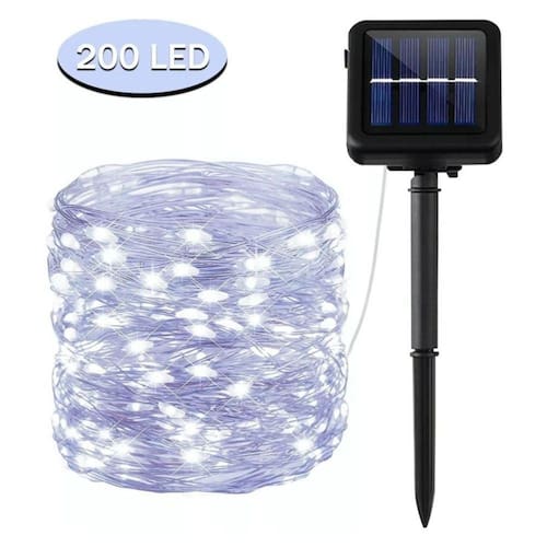 Lâmpada solar LED22M * 1 Nome: lâmpada LED solar, lâmpada de jardim de corda impermeável, corrente de lâmpada de decoração de Natal, especificações: 22 metros de comprimento total 300LED, 8 funções, passagem de 10 cm, cabo de 2 m, painel solar: 1,2 V 150 mA. Tamanho real do hidreto metálico de níquel: 300 luzes são 800 mAh, Embalagem: 14* 7* 9 cmPeso: 280 gramas Função do produto: Modo 8 está ligado, Modo 1: Modo 2-8 de conversão contínua automática; Modo 2: Onda para frente e para trás; Modo 3: corrida de cavalos com luz dupla; Modo 4: desvanecimento simples da luz; Modo 5: A estrela pisca com a mudança da corrida de cavalos; Modo 6: As duas luzes ficam cada vez mais escuras; Modo 7: Estrelas piscam; Modo 8: Luz total\ nComo usar: 1: Pressione o botão liga/desliga, a corda de luz começa a funcionar, ela recarrega automaticamente durante o dia (a luz indicadora está apagada) e acende automaticamente à noite.2: Pressione o botão MODE para definir o modo de iluminação desejado. Considere 1) Como a potência dos painéis solares é afetada pela intensidade da luz, o tempo de iluminação contínua do fio de luz varia devido às condições climáticas, mudanças sazonais, localização geográfica e outros fatores.2) A cadeia de luz só pode ser carregada quando “ON/OFF” está configurado para o estado “ON”. 3) O produto é resistente à chuva, mas não pode mergulhar diretamente na água. 4) Não bata ou bata no produto para evitar danos. 5) Uma extremidade do êmbolo é muito afiada, pague atenção à segurança ao usar. Não permita que crianças usem este produto.