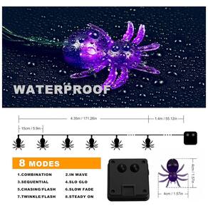 Pacote de valor de Halloween Você receberá 2 conjuntos em um pacote A luz de corda solar mais jovem tem aranhas macias em forma de 3D, uma aparência muito realista, contém um total de 60 LEDs. Cada conjunto tem comprimento de cerca de 609,6 centímetros o suficiente para atender a qualquer requisito individual. Essas luzes LED de aranha roxa trarão mais diversão e um toque assustador ao local da sua casa.