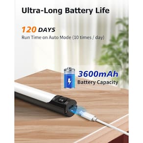 COLIJOY 64 luzes de LED embaixo do armário internas, iluminação operada por bateria recarregável de 3200 mAh, luzes de armário com sensor de movimento sem fio, luzes embaixo do balcão para cozinha - ?Exiba suas configurações personalizadas de forma clara e intuitiva?A luz de armário atualizada de 2024 apresenta o design de tela digital mais recente. Em comparação com as luzes de armário tradicionais sem uma tela de exibição, este design pode mostrar claramente 3 modos operacionais, 5 níveis de brilho e consumo de energia em tempo real. Esta inovação não apenas permite que você entenda intuitivamente o status operacional da luz, mas também permite fácil personalização para atender às suas necessidades. - ?3 modos de sensor para aplicações versáteis?Nossa luz com sensor de movimento oferece três modos de funcionamento: detecção durante todo o dia, detecção noturna e modo sempre ligado, oferecendo funcionalidade versátil para atender a uma variedade de necessidades. Alterne facilmente entre modos pressionando o botão liga/desliga. Equipada com tecnologia de infravermelho passivo (PIR) sem fio, esta luminária de armário é ideal para uso em armários, armários, quartos, escadas, corredores, cozinhas, veículos, acampamentos e oficinas. Além disso, possui uma função de memória exclusiva que mantém suas configurações para uso futuro conveniente. - ?Bateria recarregável de grande capacidade de 3600 mAh?Experimente a conveniência de nossa luz com sensor de movimento, equipada com uma bateria de alta capacidade de 3600 mAh, prolongando seu tempo de uso. Com uma única carga, no modo automático, cada ativação dura 30 segundos, acionada 10 vezes ao dia, permitindo operação contínua por mais de 4 a 6 meses. No modo sempre, desfrute de pelo menos 9 a 10 horas de iluminação mais alta. Diga adeus ao incômodo de recarga frequente e divirta-se com o desempenho duradouro. - ?Crie o seu ambiente ideal?Eleve o ambiente do seu quarto sem esforço com nosso sensor de movimento sob a luz do armário. Escolha entre três temperaturas de cor (3000K quente, 4500K natural, 6000K frio) e ajuste o brilho (20% a 100%) pressionando um botão. Perfeito para qualquer ocasião, de encontros a jantares românticos. - ?Instale facilmente a luz LED do seu gabinete? Com poderosos ímãs embutidos e o suporte de metal incluído, nossa luz com sensor de movimento de 35,5 cm é muito fácil de instalar. Você pode optar por prendê-lo à parede usando parafusos ou montá-lo com segurança em qualquer superfície plana e limpa usando o suporte adesivo 3M incluído. Desfrute de um processo de configuração sem complicações e experimente totalmente a conveniência que nossa luz LED embaixo do armário traz.
