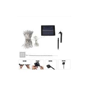 Guirlanda de Natal com luz solar de 10 metros e 100 Led.Cor: painel solar amarelo 2V 100MA.-bateria de 1,2V 600 mAh. -Carga total da bateria entre 6-8 horas. -É um produto ecológico. -Pode ser utilizado em casamentos, jardins, praças, festas, eventos. -Eles desligam e ligam automaticamente, graças ao sensor de luz. -Eles são tão brilhantes quanto os LEDs que se conectam à rede elétrica. -Eles são simples e rápidos de instalar. -São autossuficientes e não precisam de eletricidade, portanto podem ser instalados em qualquer lugar.