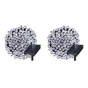 PACOTE DE 2 UNIDADES DE LUZES SOLARES GUIRNALDA DE 10 METROS 100 LED COOL WHITE Característica: -Painel solar: 2V 100MA. -Bateria: 1,2V 600 mAh. -Carga total da bateria entre 6-8 horas. -É um produto ecológico. -Pode ser utilizado em casamentos, jardins, praças, festas, eventos. -Eles desligam e ligam automaticamente, graças ao sensor de luz. -Eles são tão brilhantes quanto os LEDs que se conectam à rede elétrica. -Eles são simples e rápidos de instalar. -São autossuficientes e não precisam de eletricidade, portanto podem ser instalados em qualquer lugar. -Modos: energia intermitente ou fixa.