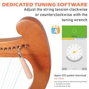 - ?Design de 19 cordas?-1(g3), 2(a3), 3(b3), 4(c4), 5(d4), 6(e4), 7(f4), 8(g4), 9(a4), 10(b4), 11(c5), 12(d5),13(e5),14(f5),15(g5),16(a5),17(f3), 18 (b5), 19(c6), escala C maior. Com mais harmonias de cordas do que uma harpa de 10 ou 16 cordas, você não precisa afinar as cordas repetidamente quando quiser tocar mais músicas em teclas diferentes.