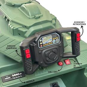 P e r m i t a c o m q u e a c r i a n ç a s e s i n t a u m v e r d e i r o s o l d a d o ! C o m o M i n i T a n q u e E l é t r i c o I m p o r t w a y a d i v e r s ã o e s t á g a r a n t i a , o c a r r i n h o a r r e m e ç a m u n i ç õ e s e a i n d a p o s s u i s o m e l u z . P o d e s e r c o n t r o l a d o p e l a c r i a n ç a o u p e l o r e s p o n s á v e l a t r a v é s d o c o n t r o l e r e m o t o .