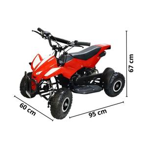 Com o Mini Quadriciclo 49CC a criançada vai se divertir como nunca! Com motor 2 Tempos de 49CC ela permite uma experiência única e verdadeira para as crianças com velocidade máxima de 40 km/h. É recomendada para crianças a partir dos 4 anos e que pesem até 60 kg. Conta com freio a disco nas duas rodas, pneus para qualquer tipo de solo e tanque para até 2 litros de combustível. Apresenta design inovador e é uma verdadeira máquina para qualquer tipo de solo como asfalto ou terra e que torna a brincadeira cheia de aventura.