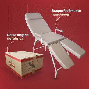 Modelo: maca bi-perna com apoio de braços Estofado: estofado de alta qualidade no tecido facto, o tecido facto é resistente ao uso de álcool 70 para limpeza e higienização. Material: estrutura aço com pintura eletrostática e mdf estofado Funcionalidade: ideal para estética, podologia e tattoo Dimensões: 75 alt. 54 larg. 180 comp. Cm Peso: 22 kg