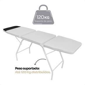 #BENEFÍCIOS: - Durabilidade: Estrutura metálica reforçada com pintura anticorrosiva. - Conforto: Estofado em bagum resistente e fácil de limpar. - Versatilidade: Regulagem em três posições para diferentes procedimentos. - Praticidade: Formato dobrável que facilita o transporte e armazenamento. - Resistência: Suporta até 120 kg.