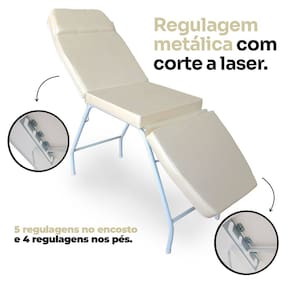 Conforto Superior: Estofado macio e suporte ergonômico para longas sessões. Espuma densidade D 28 com 5 cm de espessura Durabilidade: Construída com materiais de alta resistência para garantir uma longa vida útil. Praticidade: Por conta das suas regulagens proporciona várias posições para atender os mais diversos tipos de procedimentos. POSSUI REGULAGENS DE AÇO GALVANIZADO com corte a laser, sendo 5 níveis de regulagens no encosto e 4 níveis de regulagens nos pés. Estilo Moderno: Design elegante que complementa qualquer ambiente de trabalho. Peso Suportado: Até 160 kg Distribuídos.