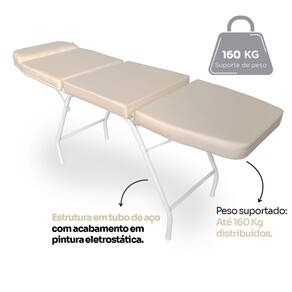 Modelo: Maca 3 posições Reclinável Estofado: Estofado de alta qualidade no tecido facto, o tecido Facto é resistente ao uso de Álcool 70° para limpeza e higienização. Material: Estrutura Aço com pintura eletrostática e MDF estofado Funcionalidade: Ideal para Estética, Massagem, Podologia e Tattoo Dimensões: 75 Alt. 54 Larg. 180 Comp. cm Peso: 20 kg