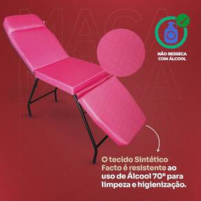 Modelo: maca 3 posições reclinável Estofado : de alta qualidade no tecido facto, o tecido facto é resistente ao uso de álcool 70 para limpeza e higienização. Material: estrutura aço com pintura eletrostática e mdf estofado Funcionalidade: ideal para estética, massagem, podologia e tattoo Dimensões: 75 alt. 54 larg. 180 comp. Cm Peso: 20 kg