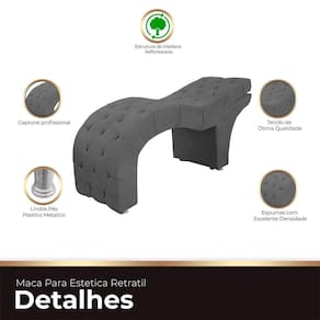 Maca Capitone Reclinável Estofada Para Estetica Facial Sombrancelha E Cílios Suede Yasmim Cor Cinza Chumbo