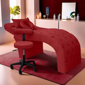 Maca Estética Para Extensão De Cílios Charme + Mocho Tapeçado Veludo Vermelho