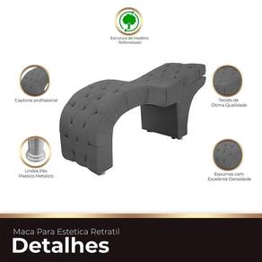 DIMENSÕES DA MACA Largura total:1,90cm; Profundidade total: 0,65cm; Altura fechado:0,90cm; Altura do encosto aberto:1,15cm; Peso suportado: 145kg. Peso:32kg;A GARANTIA É DE