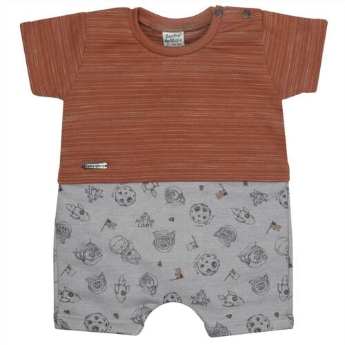 Macacão Bebê Menino Curto Moletinho Terracota / Cinza Astronauta - Sonho Mágico: Conforto e Estilo para o Seu Bebê!